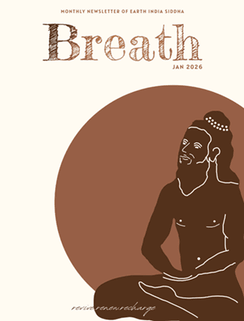 Our monthly newsletter ‘Breath’ covers various topics under the Siddha system and also provides a peek into everything we’ve been up to in the month. If subscribed, you can expect our e-mail newsletter on the 1st of every month. Do have a look at our previous issues of Breath displayed below!